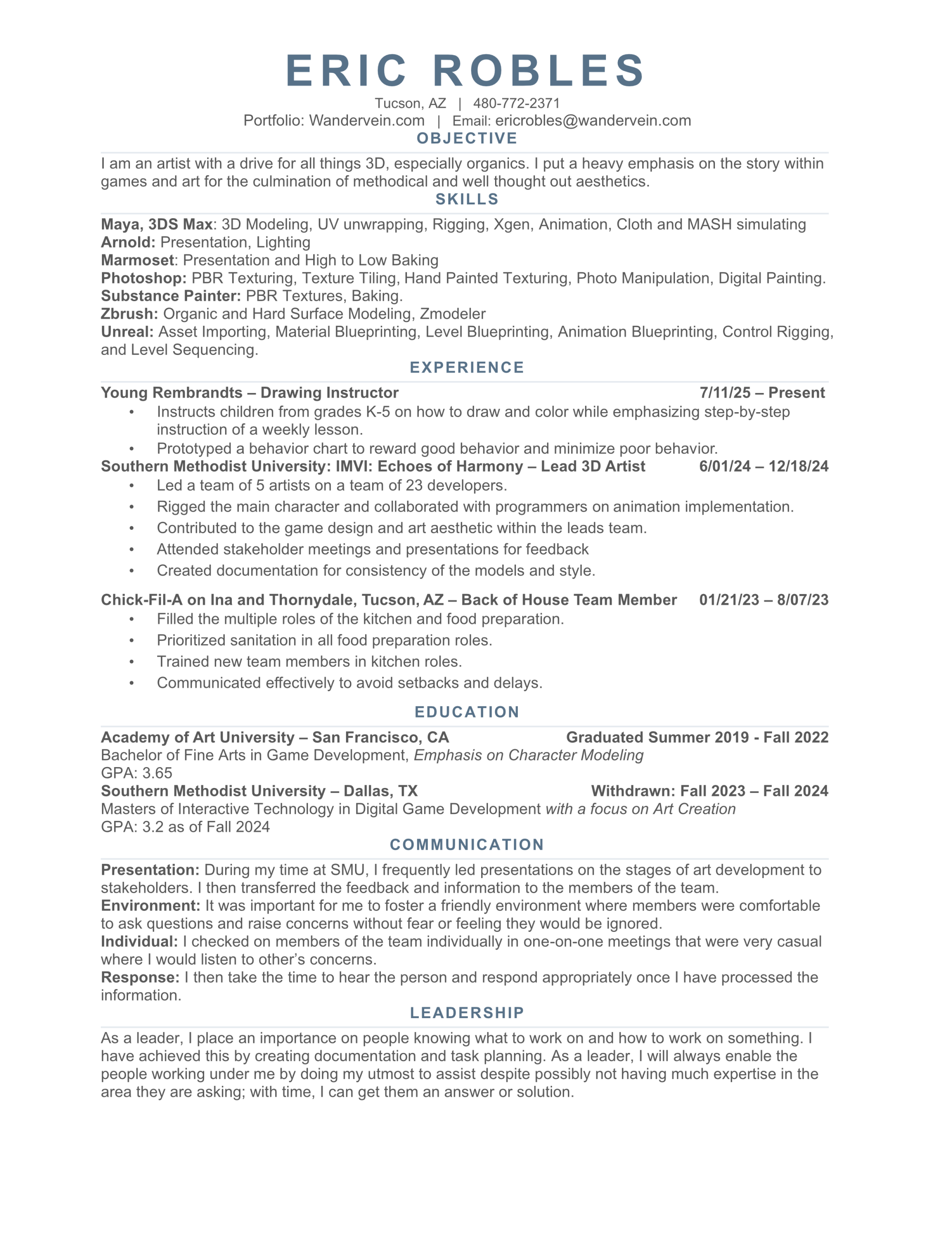ERIC ROBLES - 3D CHARACTER ARTIST